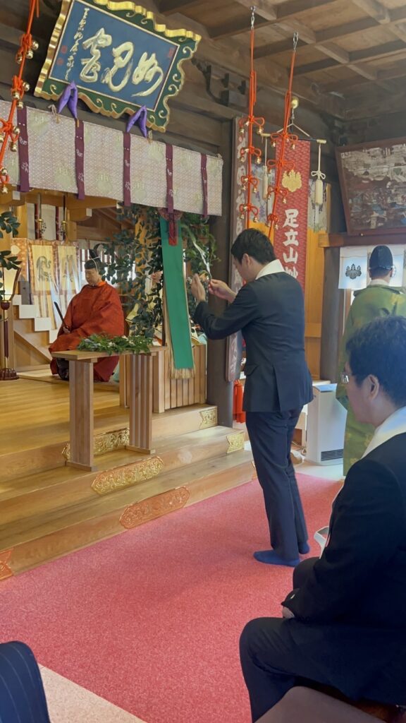 【活動報告】13日午前、小倉北区の神社で開催された秋季大祭におうかがいしました。秋の実りに感謝するお祭りです。朝早くから地域の役員の皆様方とお祓いに参加させていただきました。