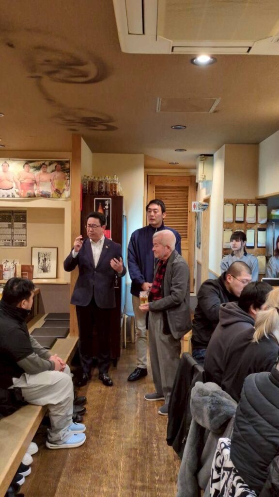 28日は寒さも少し和らぎました。地域の餅つきや忘年会も今年最後のピークです。多くの方に自民党への期待のお声をいただき、ありがとうございます!