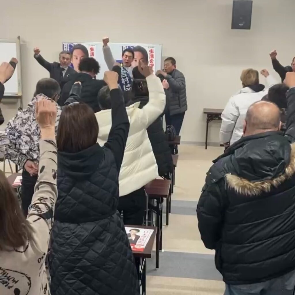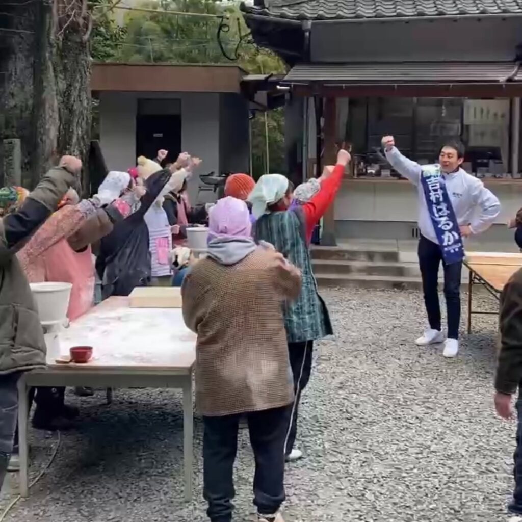 「日本列島を強く、豊かにし、頑張る人が報われ、困った時には助け合い、安心して家庭を持ち、夢を持って働ける国」にするため、今回の総選挙では、小選挙区は「吉村はるか」、比例区は「自民党」をよろしくお願いします。