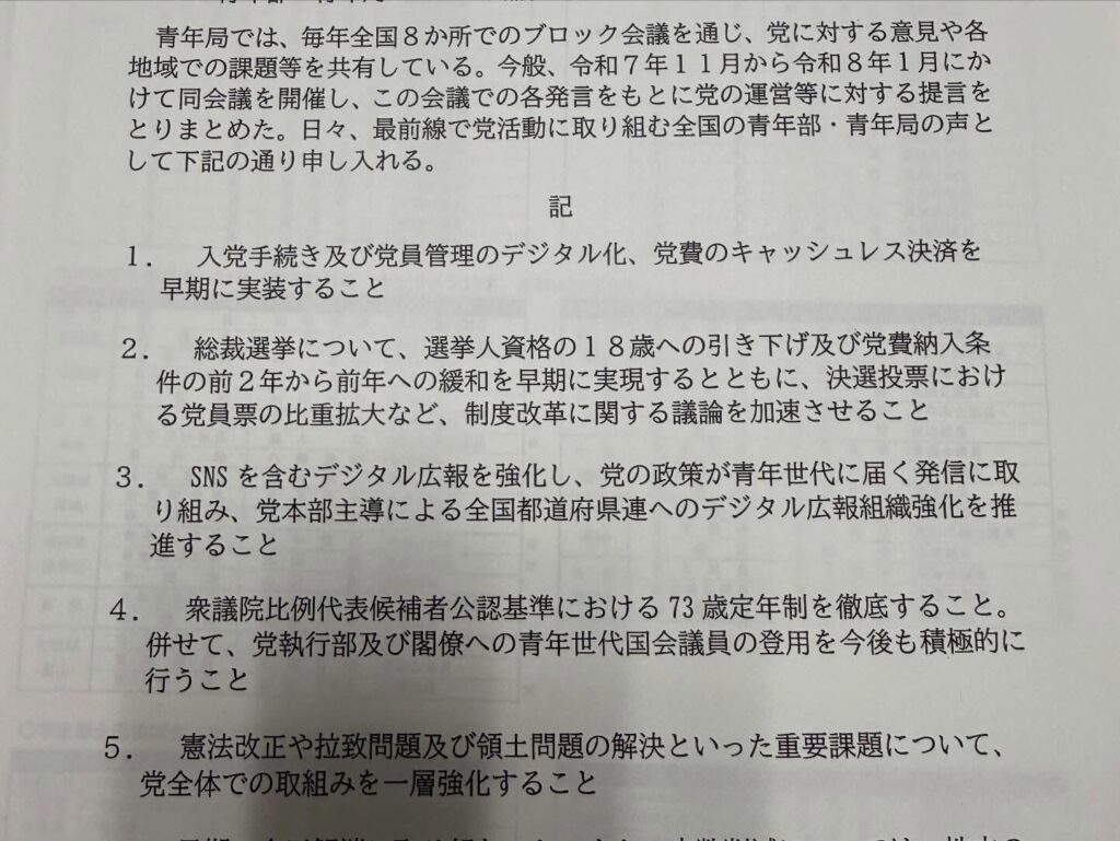 など、党運営に対する具体的な提言が取りまとめられました。